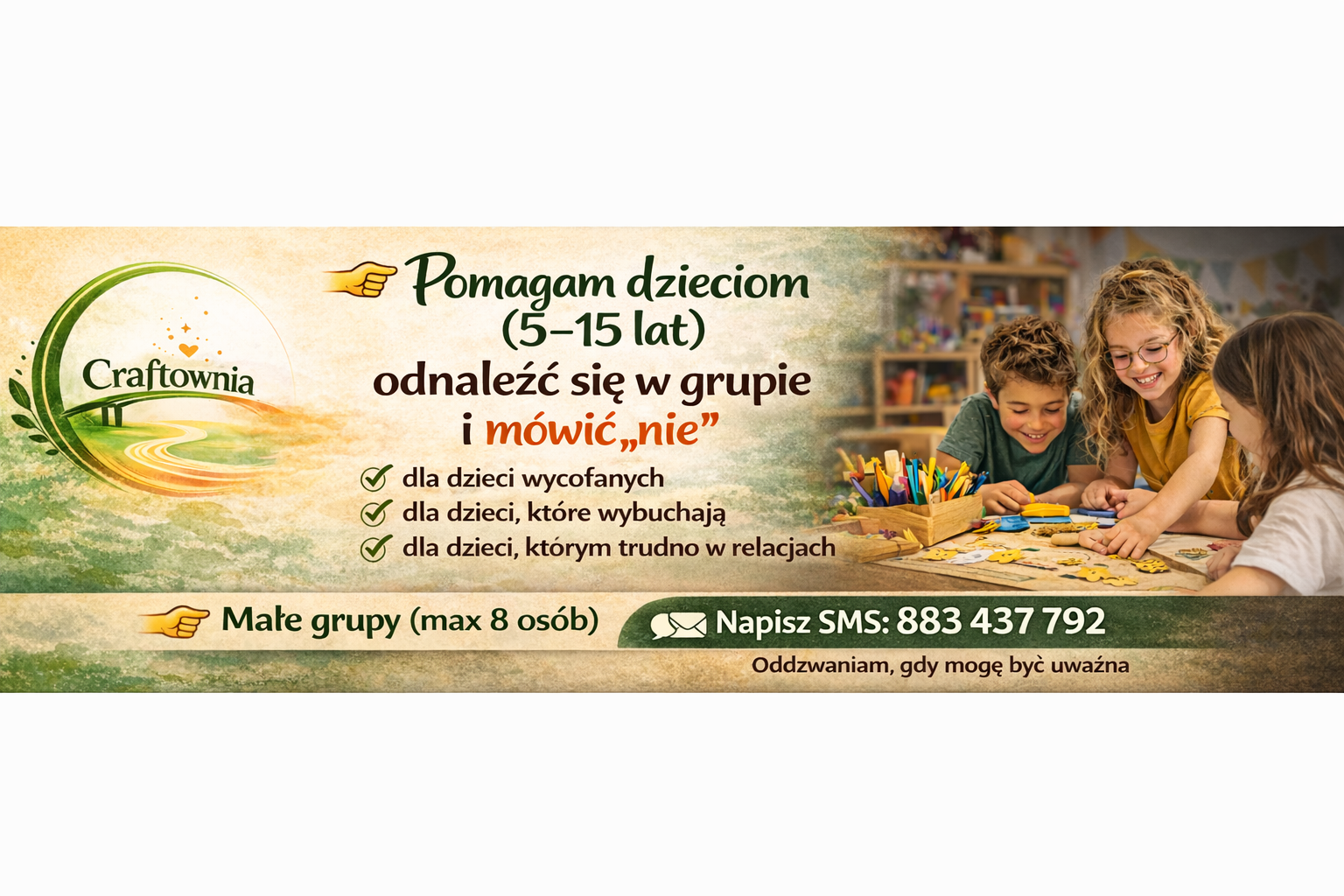 W ciągu dnia pracuję z dziećmi dlatego najlepiej napisać sms – oddzwonię.
